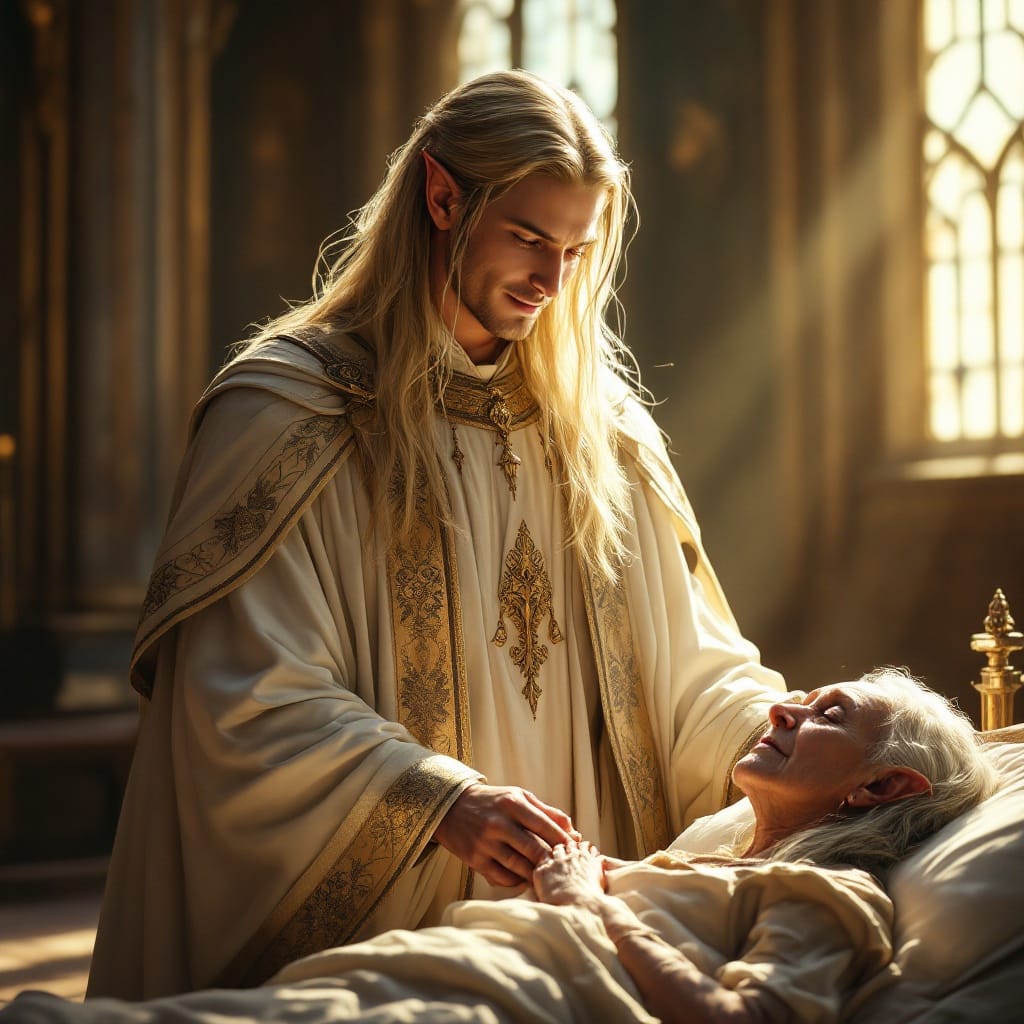 Brother Antal De’Luvian, an elven scholar from the city of Illi Ahn who studied magic and medicine at its prestigious University, was the man who greeted them. He came to Cerr Nyel hoping to study under Erwin Seeler, the Priest of the Church of Mirzha but found himself in the center of a humanitarian crisis. Working closely beside Brother Seeler, Antal utilized his skills and talents to tend to the sick and the injured and to ensure that the masses were fed and sheltered. In time, Antal was mistaken for a holy man himself, with many assuming his white and gold scholarly robes were the vestments of a priest. His words of hope and optimism were an inspiration to those who settled the city, influencing them to construct a house for the feeding of the hungry, clothing of the naked, and healing of the sick. With Brother Seeler’s blessing, the structure was erected by the labor of the refugees of Cerr Nyel under the direction of skilled architects and builders from the king’s courts in Camnia. Nearly matching the grandeur of the Church of Mirzha, the edifice was colloquially referred to as “The Church of the Dawn” until it was officially named such in the records of the city.