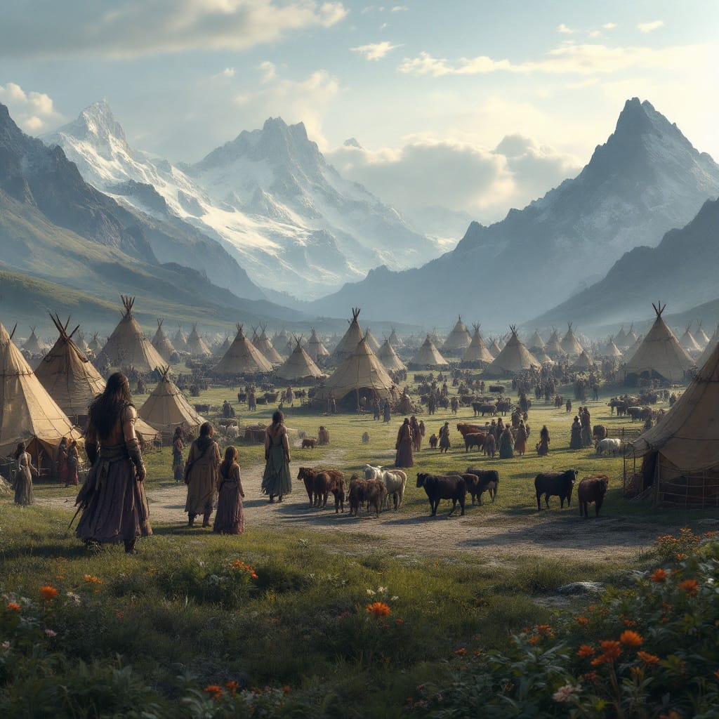In defiance of the dangers of the savage lands, there are some men who call it home. They dwell within those lands, respecting the perils of the untamed world. But rather than tame the land, they take their place within it, not as its lords, but as equals to the wild things that live there. Some call them barbarians, but they call themselves “Wild Men.” From time to time, they would visit our farms in the summer and early autumn, trading animals from their herds and pelts, tusks, and ivory from their hunts in exchange for fruit, metal, and glass. They were always wary of venturing too close to the towns and villages in the mountains, but I never understood if it was out of fear or respect. They are a nomadic people, moving in tribes of thousands near the rivers, lakes, and streams, grazing their animals on the open plains for a week or two before moving onwards. They must find strength and protection in numbers to endure such a hostile and predatory world. Or perhaps they have some wisdom–some understanding of the wilds that we do not that shelters them from its dangers.